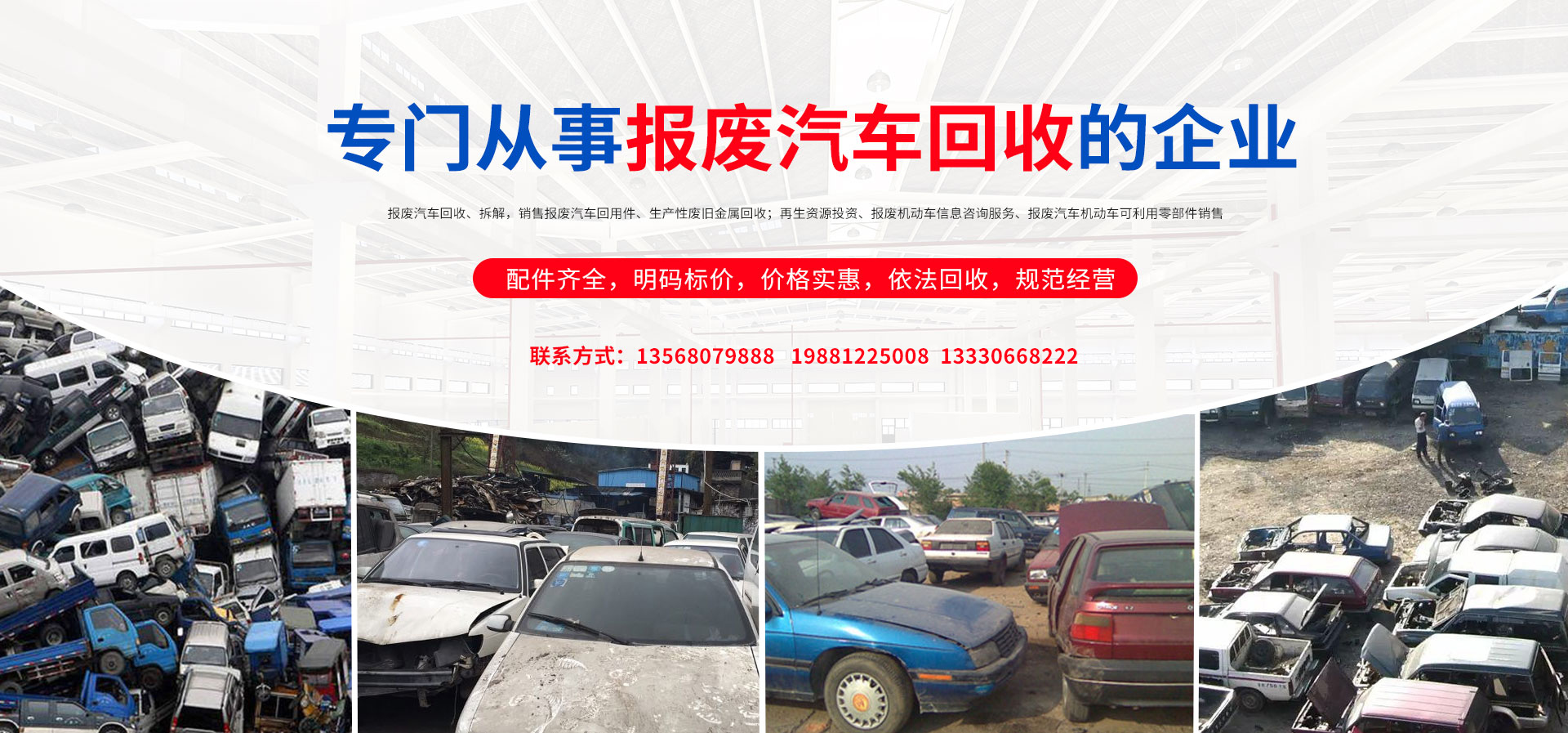 我公司在報(bào)廢汽車回收拆解中,認(rèn)真貫徹執(zhí)行國家法律法規(guī),嚴(yán)格執(zhí)行國務(wù)院令第307號(hào),積極開展行業(yè)自律,依法回收,規(guī)范經(jīng)營,從源頭上控制了報(bào)廢汽車整車、拼裝車、“五大總成”等上路和重新流入市場的現(xiàn)象,為緩解我市資源短缺,減輕環(huán)境污染,促進(jìn)資源循環(huán),維護(hù)人民群眾生命財(cái)產(chǎn)安全和道路交通安全起到了巨大的作用。