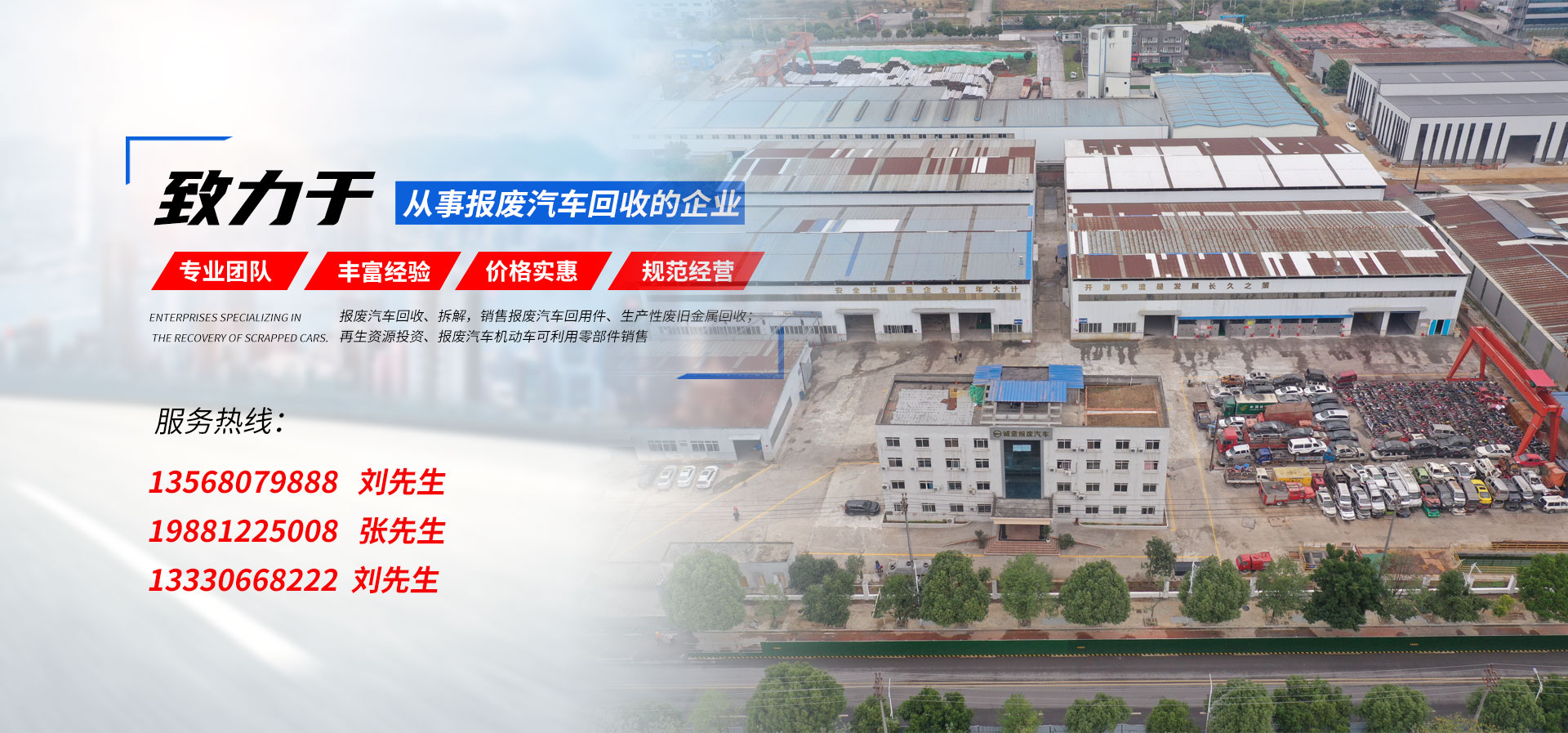 宜賓市誠意報(bào)廢汽車回收有限公司成立于2005年7月,是專門從事報(bào)廢汽車回收的企業(yè)。收購二手卡特、小松、住友、沃爾沃、神鋼、3字頭的挖機(jī)。報(bào)廢汽車回收、拆解,銷售報(bào)廢汽車回用件、生產(chǎn)性廢舊金屬回收;再生資源投資、報(bào)廢機(jī)動(dòng)車信息咨詢服務(wù)、報(bào)廢汽車機(jī)動(dòng)車可利用零部件銷售。特點(diǎn):報(bào)廢機(jī)動(dòng)車拆解基地及可利用零部件銷售基地。******:配件齊全,明碼標(biāo)價(jià),******實(shí)惠。品種:車型眾多,回用件種類豐富:車胎、壓縮機(jī)、座椅、車門、玻璃等各類車型及可利用零部件。公司經(jīng)營地址占地10596平方米,其中硬化面積是6500平方米,擁有各類符合拆解行業(yè)專業(yè)人員六人。公司新建廠區(qū)布局規(guī)范合理,車間寬暢明亮,擁有各類專業(yè)機(jī)具十二臺(tái)套。